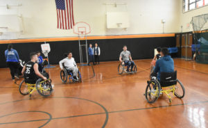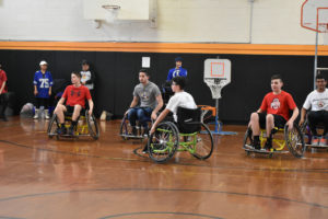 If you were to list all the connections that the Michael Magro Foundation has made since 2005, you’d find yourself easily running out of paper. The foundation, which hosted its Fifth Annual “Magro Madness” 3v3 Basketball Tournament on March 2, has been connected to over one hundred different businesses and restaurants since their inception. It seemed perfectly logical for Jimmy Montana, chair of the event and MMF board member, to connect with the wheelchair basketball coach at the Henry Viscardi School in Albertson. This year’s event was the first for the wheelchair basketball team, which consisted of five players who competed against five able-bodied students in wheelchairs to play an adaptive exhibition game in Hicksville High School’s small gym.