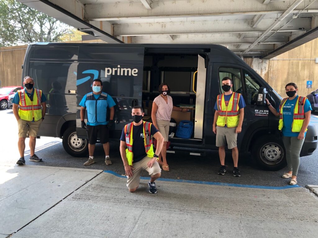 Their generosity keeps on Giving!! Chris and Tommy offered to help the foundation get the backpacks delivered to the hospitals Terrie identified. Our first stop was Nu Health, an Amazon-branded van delivered 100 Backpacks on 8/27. Linda Walsh, Executive Director of Nu Health Foundation, and some pediatric staff members were there to greet the Amazon representatives and Terrie to accept the delivery. Jennifer Munoz, SW stated how much this donation would mean to their families. Jennifer went on to say, “We serve some lower socio-economic families and with Covid-19, parents losing jobs and struggling our reach to help provide much-needed supplies to families will be so appreciated”. Amazon staff, Chris Lupis, Charlie from Operations, Tommy Higgins, Area Manager, and Jayne Timo, Community Outreach Coordinator were so touched by the healthcare workers kind words.