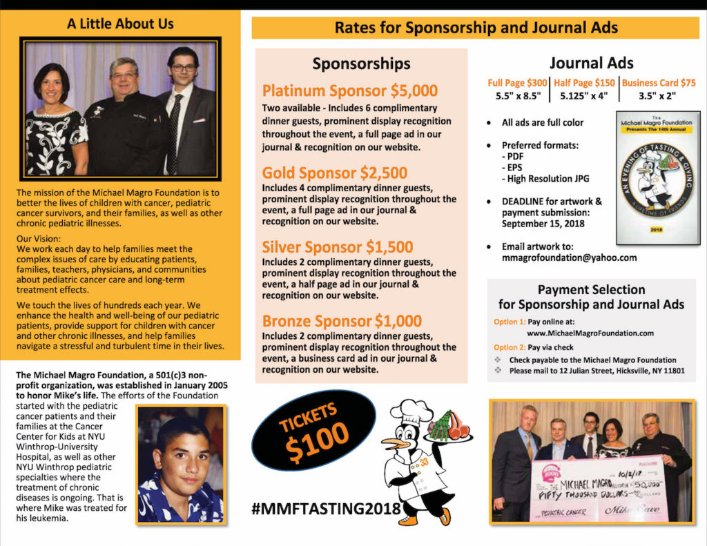 The event will benefit The Cancer Center for Kids at NYU Winthrop Hospital, the Pediatric Hematology/Oncology Program at Stony Brook Hospital and other pediatric specialty programs.