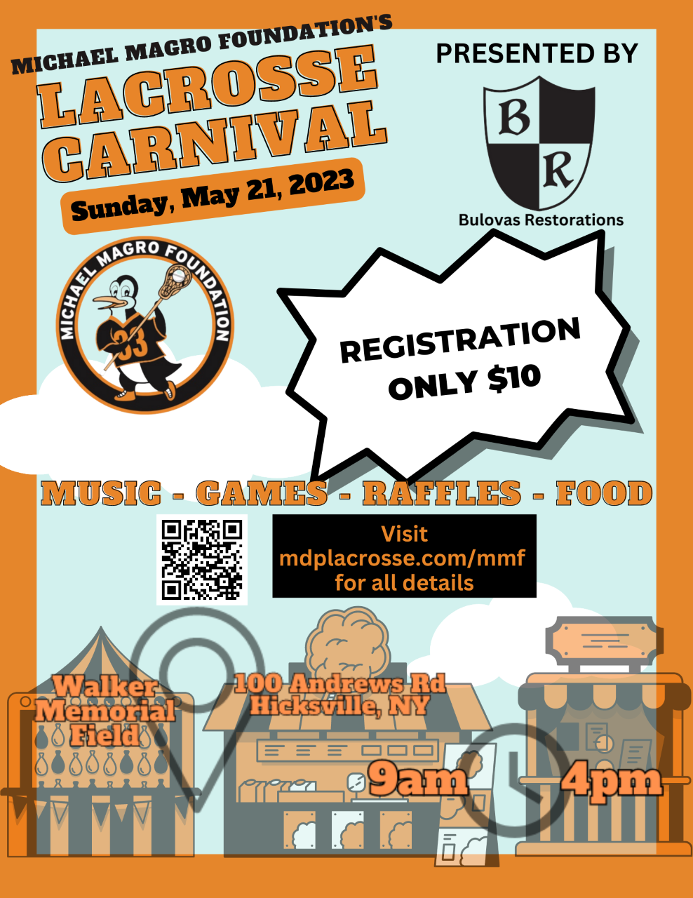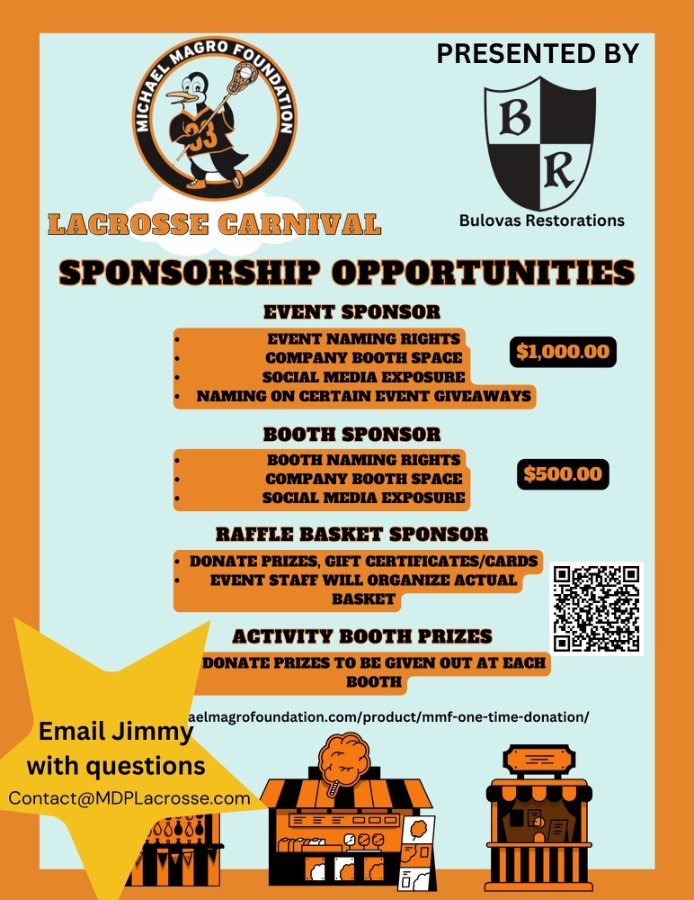 A one-time $10.00 donation guarantees your pre-registration. Include “Lacrosse Carnival” in your donation note!