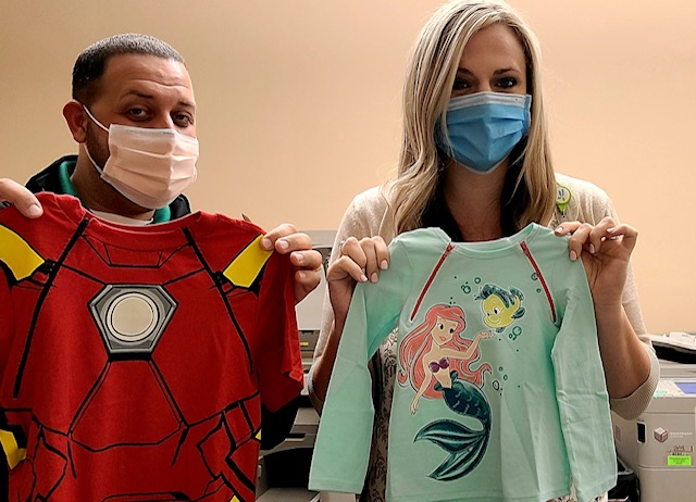 Each shirt donated had a character, superhero, or another fun design! The unique concept to have zippers inserted on each side for easy access to the Mediport made the process much more bearable.
