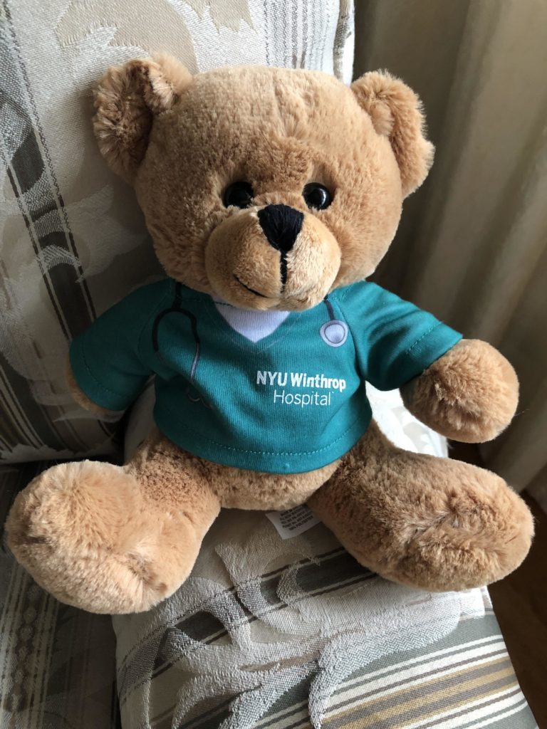 Regina Rattinger, a nurse on NYU Winthrop Hospital’s Endoscopy Unit, recalled a young girl who had been very ill, with frequent trips in and out of the hospital. The patient was one in a set of triplets, with two sisters at home. The Teddy Bear Program provided the young patient with a bear for herself along with two others to give to her sisters. Her mother was grateful for the thoughtfulness – not only for her daughter who was battling an array of medical challenges, but also her sisters at home worried about their sibling. The bears provided comfort and a sense of caring from the hospital staff that went above and beyond the excellent care provided.