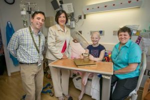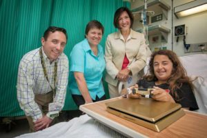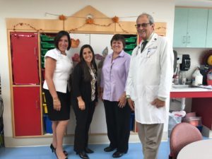 WEDNESDAY, SEPTEMBER 20, 2017: Terrie Magro and Jeanine Spencer of The Spencer Foundation met with NYU Winthrop Hospital to discuss expanding the Operation: Playcation! program to bring PlayStation 4 consoles and games to patients in their pediatrics unit. They are pictured here with Nicole Almeida, Director of the Child Life Program, and Dr. Leonard Krilov, Chairman of Pediatrics.