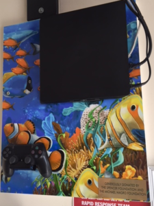 Tuesday, February 20, 2018: Stony Brook Children’s Hospital now has 4 PS4 consoles installed in patient rooms, with two more coming soon. Each mounting board has a plaque recognizing the console as a donation of The Spencer Foundation and The Michael Magro Foundation. Joan Alpers, Director of Child Life Services, thanked the Foundations, saying “You are making a huge difference for us. This good work will last a long time.”