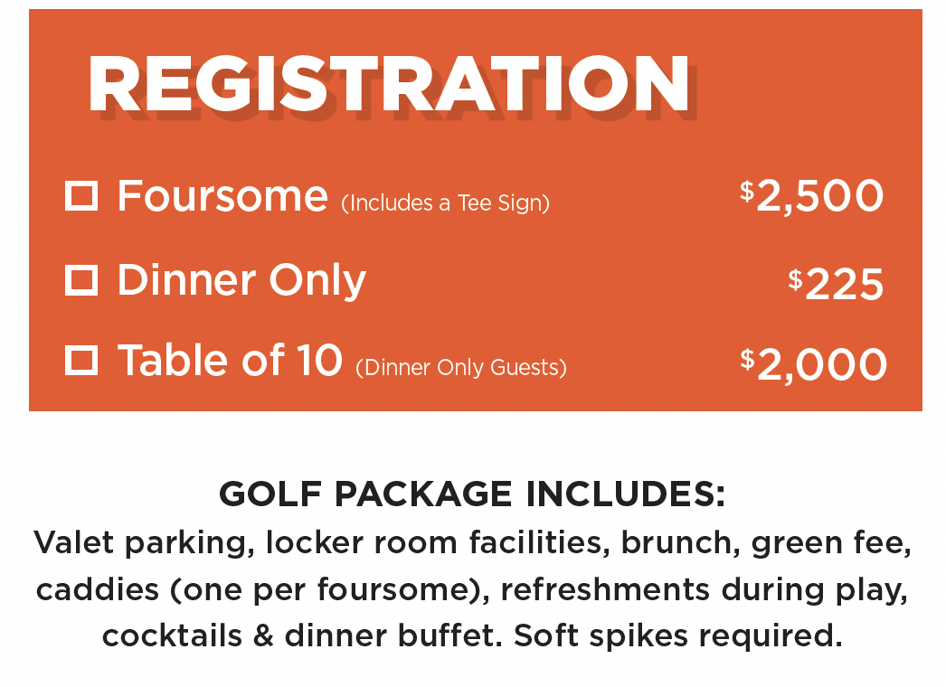 Select an option... Foursome (Includes a Tee Sign) – SOLD OUT Dinner Only ($225.00) Table of 10 (Dinner Only Guests) ($2,000.00)